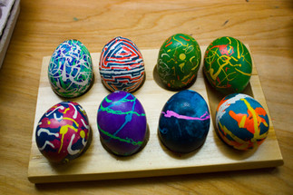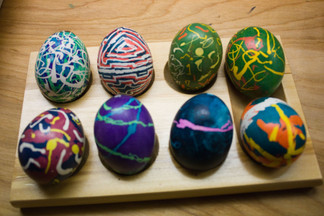 I learned the art of Ukrainian Egg Dying in high school. As the kids were growing up I passed the knowledge along. We had some epic Easter Egg Fetes! The video above is a time-lapse of the last Fete we hosted. It compresses about 8 hours of actual time down to about 15 minutes. These are but a few of the thousands of eggs we did over the years.