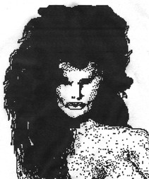These images were generated using CubiComp Picturemaker software, and True Color Paint. The Dot Matrix Babe was produced using an Etch-A-Sketch style program I wrote to take the input from two Paddle controllers- it was printed on a Dot Matrix printer, hence the name.